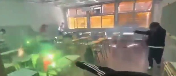Un grupo de alumnos se filmó mientras se lanzaban la pirotecnia dentro del aula. Un grupo de alumnos se filmó mientras se lanz...